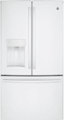 GE® Series 27.8 Cu. Ft. French Door Refrigerator-White with LED lighting and space-saving icemakerRead More