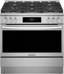 Frigidaire Gallery 36" Gas Range with Total Convection System enables cooking modes like Air Fry, Quick Preheat, Slow Cook, Steam Bake, Convection Bake and more! The flexible six burner cooktop offers ultimate cooking flexibility including two powerful 18,000 BTU Quick Boil Burners and a 5,000 BTU burner for simmering delicate foods.Read More